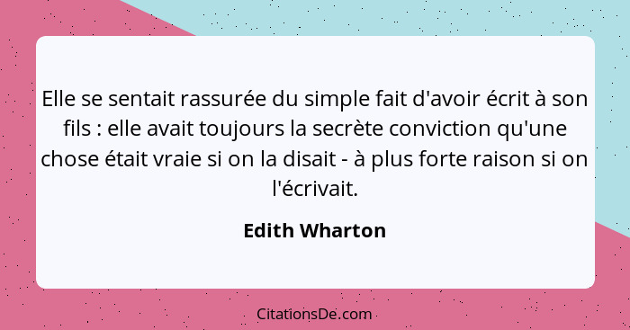 Elle se sentait rassurée du simple fait d'avoir écrit à son fils : elle avait toujours la secrète conviction qu'une chose était vraie si on la disait - à plus forte raison si on l'écrivait.