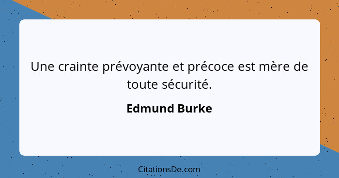 Une crainte prévoyante et précoce est mère de toute sécurité.
