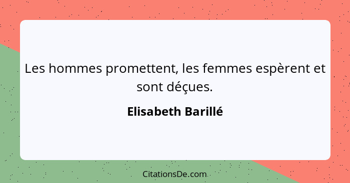 Les hommes promettent, les femmes espèrent et sont déçues.