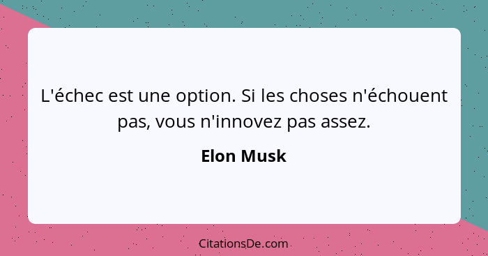 L'échec est une option. Si les choses n'échouent pas, vous n'innovez pas assez.