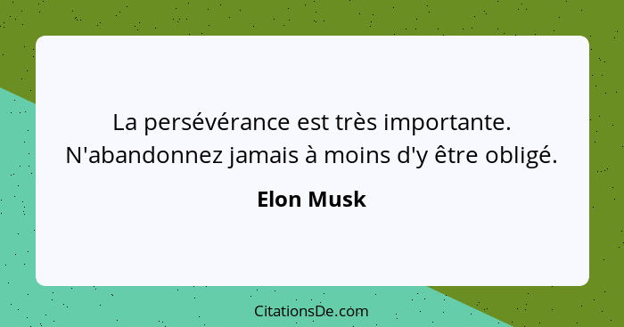 La persévérance est très importante. N'abandonnez jamais à moins d'y être obligé.