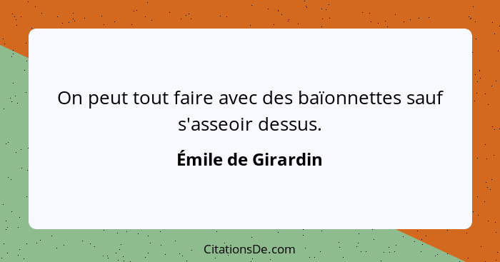 On peut tout faire avec des baïonnettes sauf s'asseoir dessus.