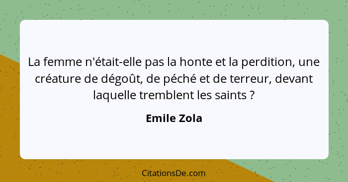 La femme n'était-elle pas la honte et la perdition, une créature de dégoût, de péché et de terreur, devant laquelle tremblent les saints ?