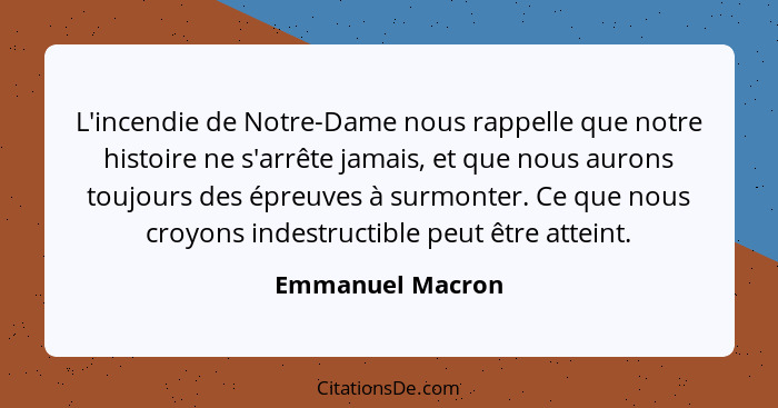 L'incendie de Notre-Dame nous rappelle que notre histoire ne s'arrête jamais, et que nous aurons toujours des épreuves à surmonter. Ce que nous croyons indestructible peut être atteint.