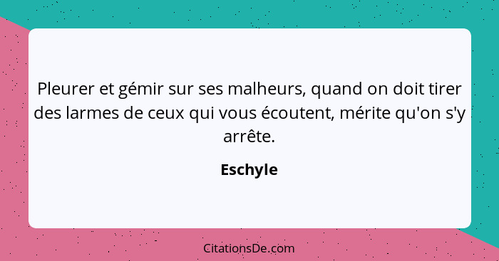 Pleurer et gémir sur ses malheurs, quand on doit tirer des larmes de ceux qui vous écoutent, mérite qu'on s'y arrête.