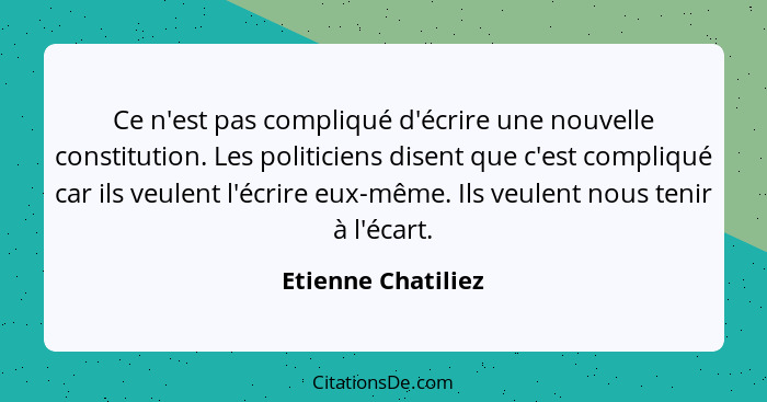 Ce n'est pas compliqué d'écrire une nouvelle constitution. Les politiciens disent que c'est compliqué car ils veulent l'écrire eux-même. Ils veulent nous tenir à l'écart.