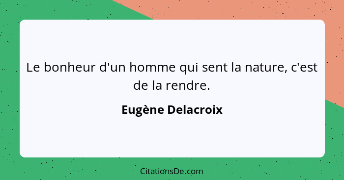 Le bonheur d'un homme qui sent la nature, c'est de la rendre.
