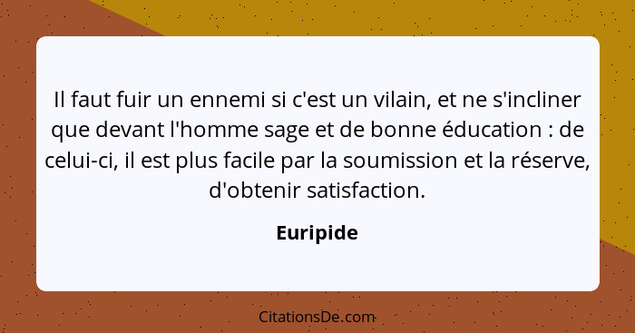 Il faut fuir un ennemi si c'est un vilain, et ne s'incliner que devant l'homme sage et de bonne éducation : de celui-ci, il est plus facile par la soumission et la réserve, d'obtenir satisfaction.