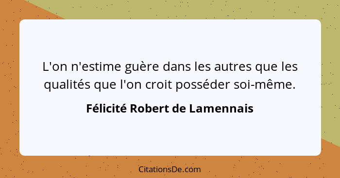 L'on n'estime guère dans les autres que les qualités que l'on croit posséder soi-même.