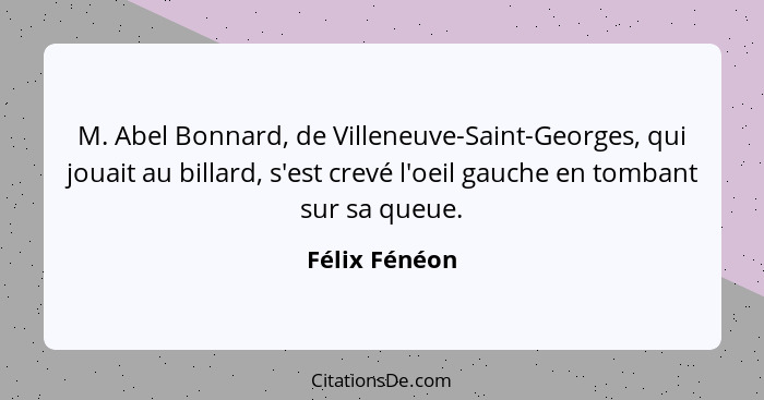 M. Abel Bonnard, de Villeneuve-Saint-Georges, qui jouait au billard, s'est crevé l'oeil gauche en tombant sur sa queue.