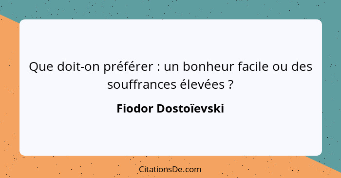 Que doit-on préférer : un bonheur facile ou des souffrances élevées ?