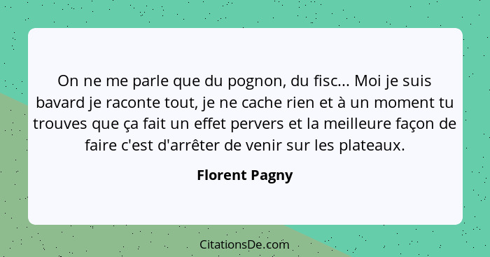 On ne me parle que du pognon, du fisc... Moi je suis bavard je raconte tout, je ne cache rien et à un moment tu trouves que ça fait un effet pervers et la meilleure façon de faire c'est d'arrêter de venir sur les plateaux.