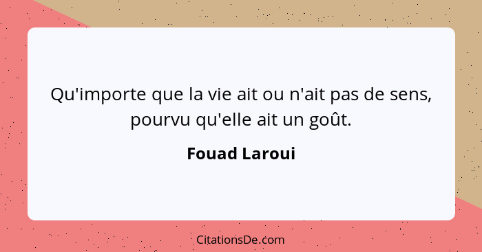 Qu'importe que la vie ait ou n'ait pas de sens, pourvu qu'elle ait un goût.