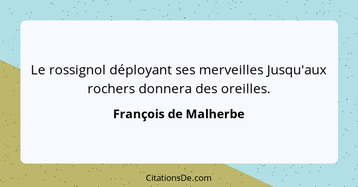 Le rossignol déployant ses merveilles Jusqu'aux rochers donnera des oreilles.