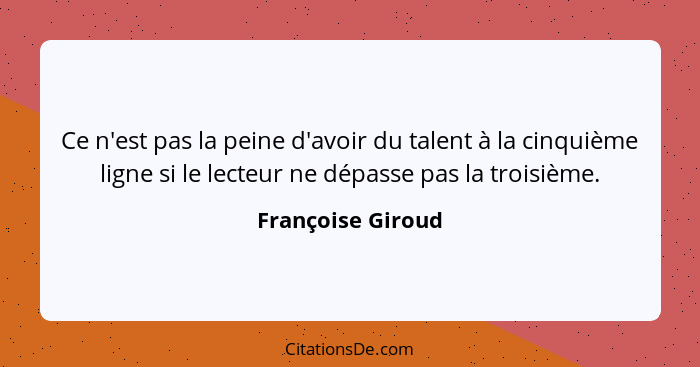 Ce n'est pas la peine d'avoir du talent à la cinquième ligne si le lecteur ne dépasse pas la troisième.