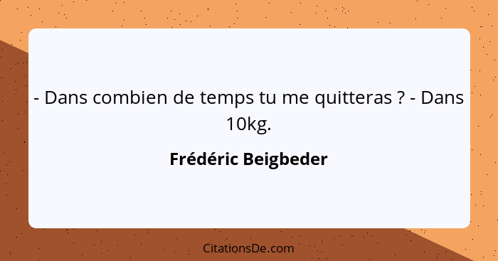 - Dans combien de temps tu me quitteras ? - Dans 10kg.