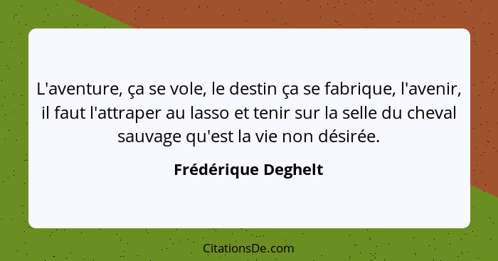 L'aventure, ça se vole, le destin ça se fabrique, l'avenir, il faut l'attraper au lasso et tenir sur la selle du cheval sauvage qu'est la vie non désirée.