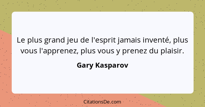 Le plus grand jeu de l'esprit jamais inventé, plus vous l'apprenez, plus vous y prenez du plaisir.