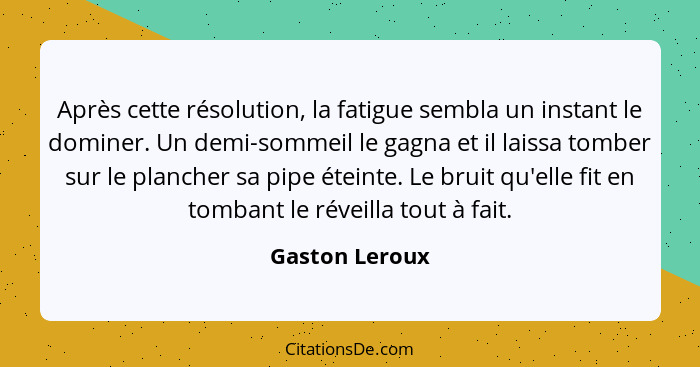 Après cette résolution, la fatigue sembla un instant le dominer. Un demi-sommeil le gagna et il laissa tomber sur le plancher sa pipe éteinte. Le bruit qu'elle fit en tombant le réveilla tout à fait.