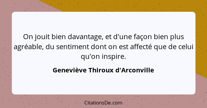 On jouit bien davantage, et d'une façon bien plus agréable, du sentiment dont on est affecté que de celui qu'on inspire.