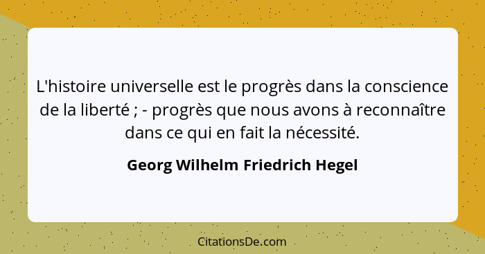 L'histoire universelle est le progrès dans la conscience de la liberté ; - progrès que nous avons à reconnaître dans ce qui en fait la nécessité.