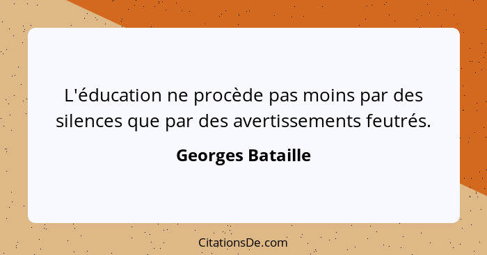 L'éducation ne procède pas moins par des silences que par des avertissements feutrés.