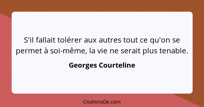 S'il fallait tolérer aux autres tout ce qu'on se permet à soi-même, la vie ne serait plus tenable.