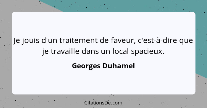 Je jouis d'un traitement de faveur, c'est-à-dire que je travaille dans un local spacieux.