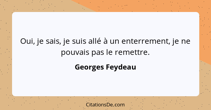 Oui, je sais, je suis allé à un enterrement, je ne pouvais pas le remettre.
