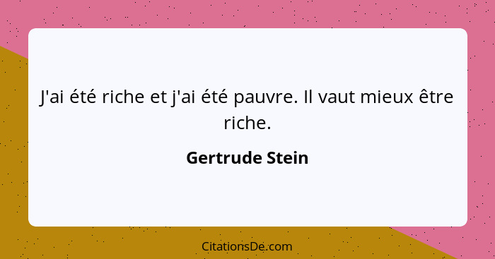 J'ai été riche et j'ai été pauvre. Il vaut mieux être riche.
