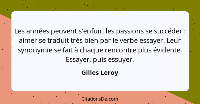 Les années peuvent s'enfuir, les passions se succéder : aimer se traduit très bien par le verbe essayer. Leur synonymie se fait à chaque rencontre plus évidente. Essayer, puis essuyer.
