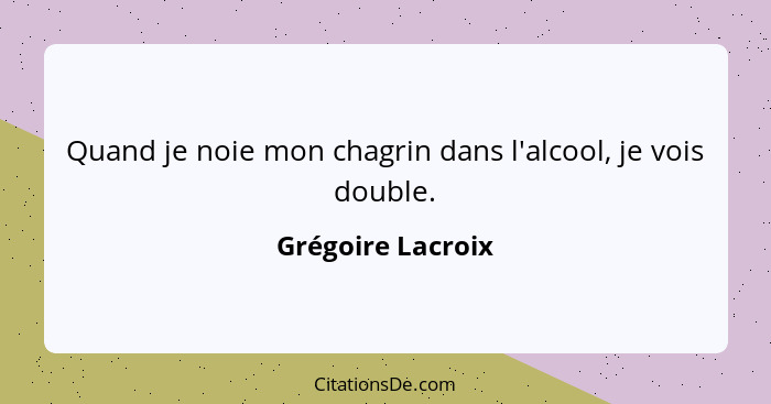 Quand je noie mon chagrin dans l'alcool, je vois double.