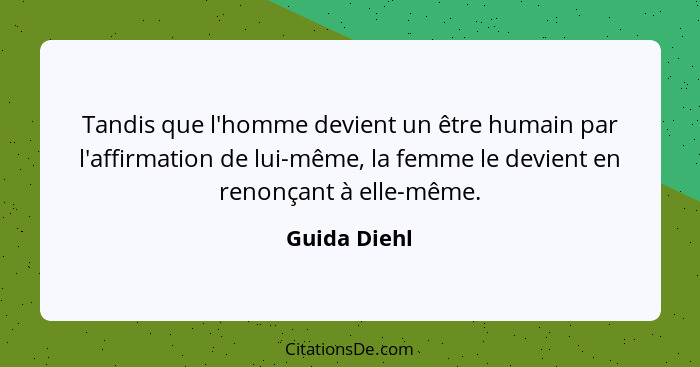 Tandis que l'homme devient un être humain par l'affirmation de lui-même, la femme le devient en renonçant à elle-même.
