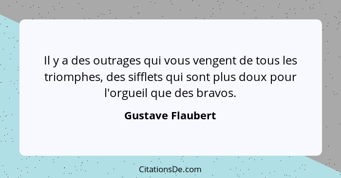 Il y a des outrages qui vous vengent de tous les triomphes, des sifflets qui sont plus doux pour l'orgueil que des bravos.