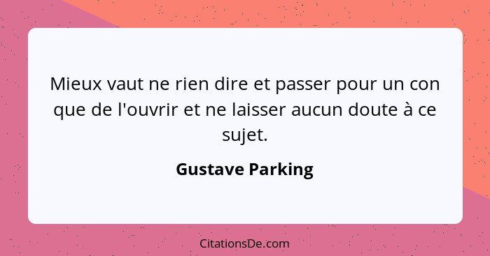 Mieux vaut ne rien dire et passer pour un con que de l'ouvrir et ne laisser aucun doute à ce sujet.