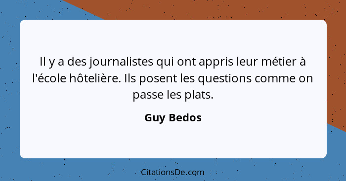 Il y a des journalistes qui ont appris leur métier à l'école hôtelière. Ils posent les questions comme on passe les plats.