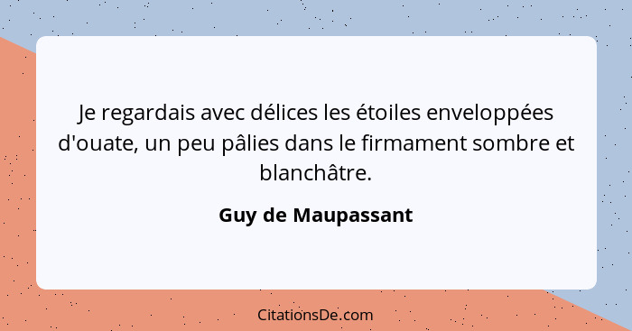 Je regardais avec délices les étoiles enveloppées d'ouate, un peu pâlies dans le firmament sombre et blanchâtre.