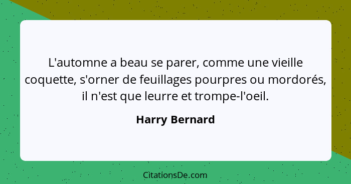 L'automne a beau se parer, comme une vieille coquette, s'orner de feuillages pourpres ou mordorés, il n'est que leurre et trompe-l'oeil.