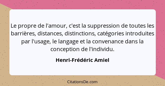 Le propre de l'amour, c'est la suppression de toutes les barrières, distances, distinctions, catégories introduites par l'usage, le langage et la convenance dans la conception de l'individu.