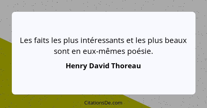Les faits les plus intéressants et les plus beaux sont en eux-mêmes poésie.
