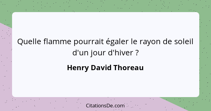 Quelle flamme pourrait égaler le rayon de soleil d'un jour d'hiver ?