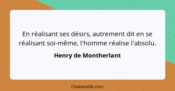 En réalisant ses désirs, autrement dit en se réalisant soi-même, l'homme réalise l'absolu.
