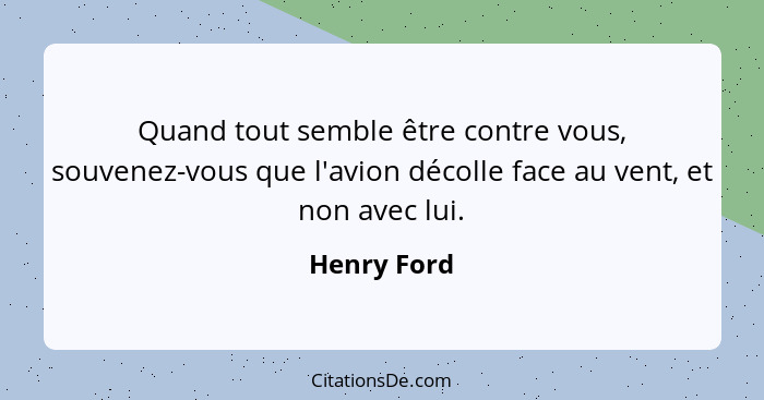 Quand tout semble être contre vous, souvenez-vous que l'avion décolle face au vent, et non avec lui.