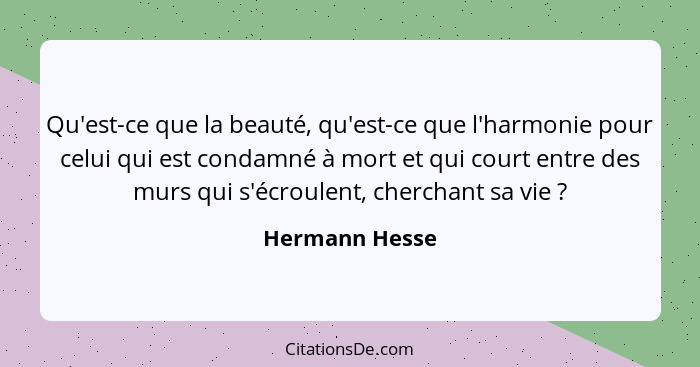 Qu'est-ce que la beauté, qu'est-ce que l'harmonie pour celui qui est condamné à mort et qui court entre des murs qui s'écroulent, cherchant sa vie ?