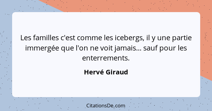 Les familles c'est comme les icebergs, il y une partie immergée que l'on ne voit jamais... sauf pour les enterrements.