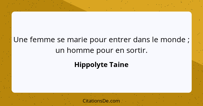 Une femme se marie pour entrer dans le monde ; un homme pour en sortir.