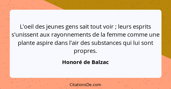 L'oeil des jeunes gens sait tout voir ; leurs esprits s'unissent aux rayonnements de la femme comme une plante aspire dans l'air des substances qui lui sont propres.