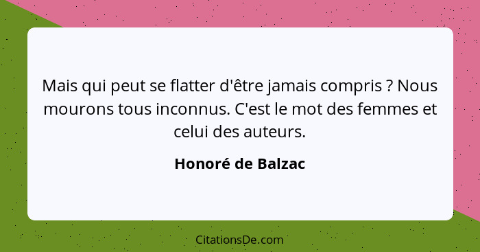 Mais qui peut se flatter d'être jamais compris ? Nous mourons tous inconnus. C'est le mot des femmes et celui des auteurs.