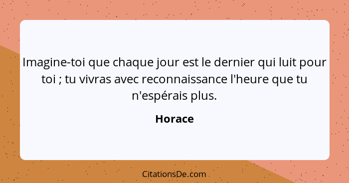 Imagine-toi que chaque jour est le dernier qui luit pour toi ; tu vivras avec reconnaissance l'heure que tu n'espérais plus.