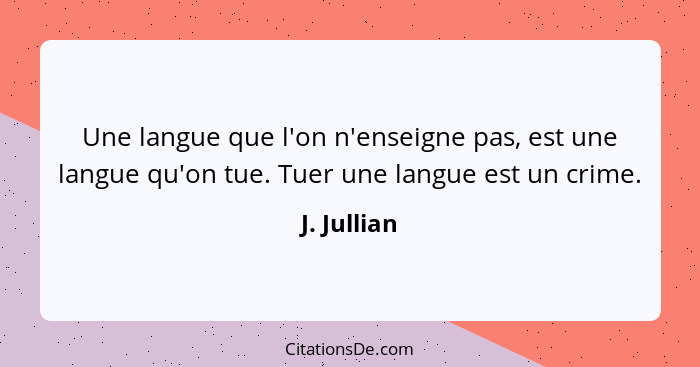 Une langue que l'on n'enseigne pas, est une langue qu'on tue. Tuer une langue est un crime.